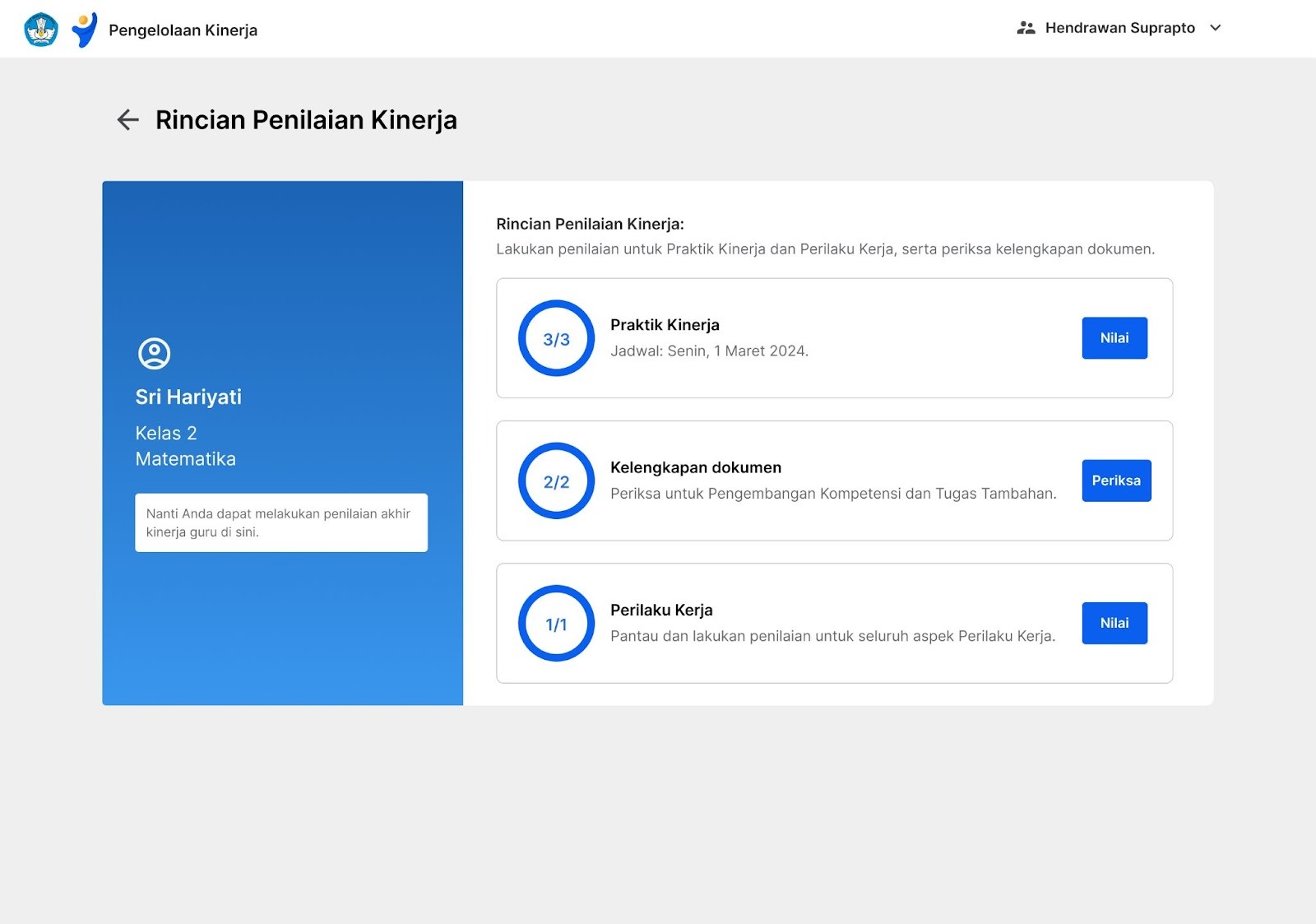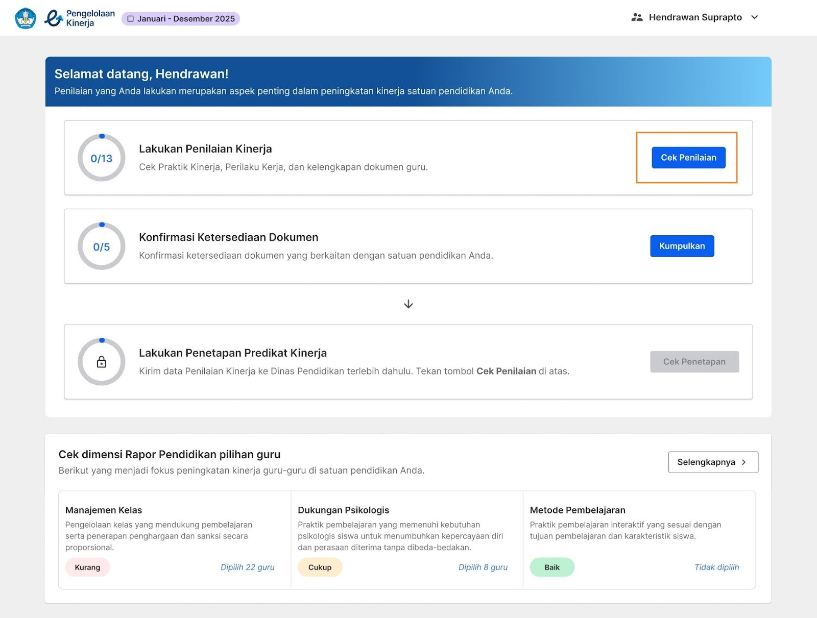 2. Klik ‘Cek Penilaian’ untuk memilih daftar Guru yang ingin diberikan Penilaian Kinerja