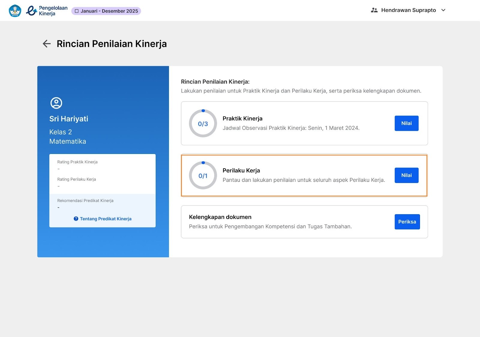 - Klik ‘Nilai’ untuk mulai memberikan Penilaian Perilaku Kerja.