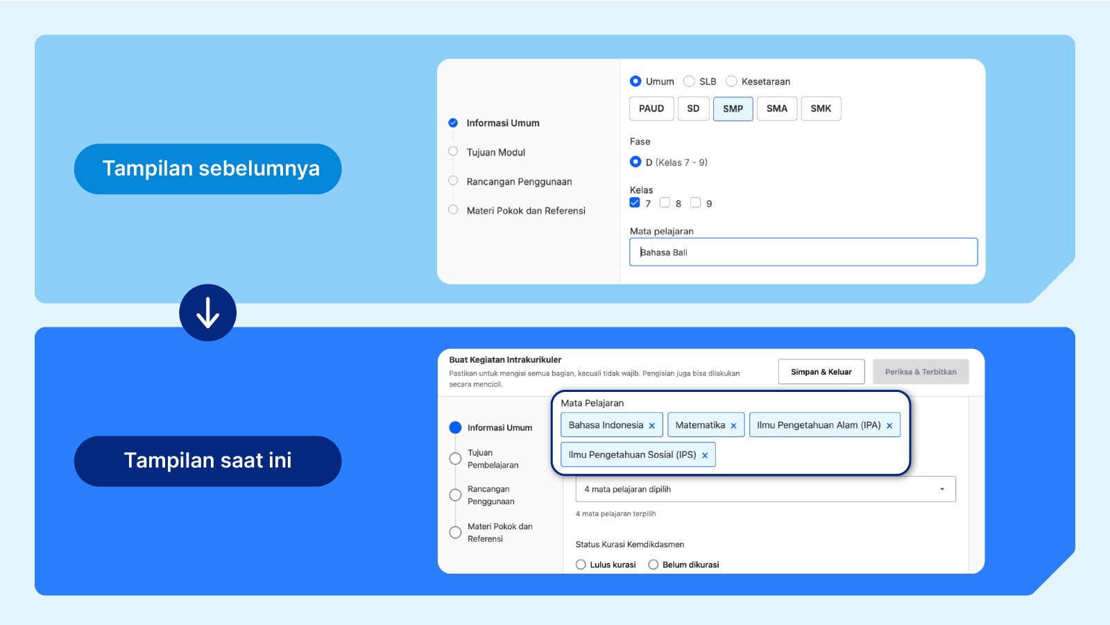 Dengan istilah yang selaras dan fitur yang lebih fleksibel saat ini, guru dapat lebih mudah menemukan perangkat ajar yang relevan, sementara kontributor memiliki struktur yang lebih jelas dalam menyusunnya.